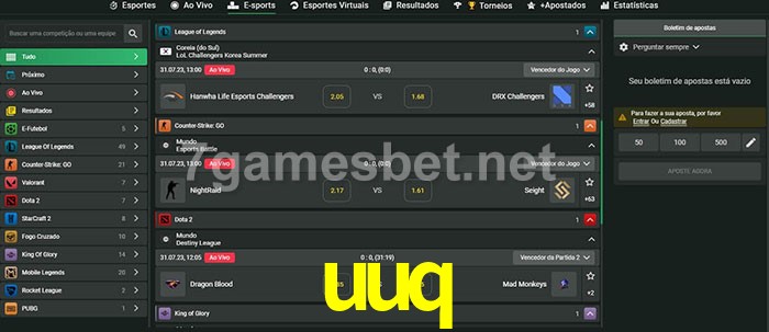 O uuq oferece uma grande seleção de opções de apostas em e-sports com probabilidades competitivas
